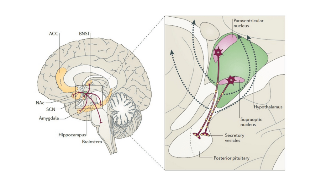 Andreas Meyer-Lindenberg, Gregor Domes, Peter Kirsch and Markus Heinrichs (2011) Oxytocin and vasopressin in the human brain: social neuropeptides for translational medicine, Nat Rev Neurosci. 2011 Aug 19;12(9):524-38
